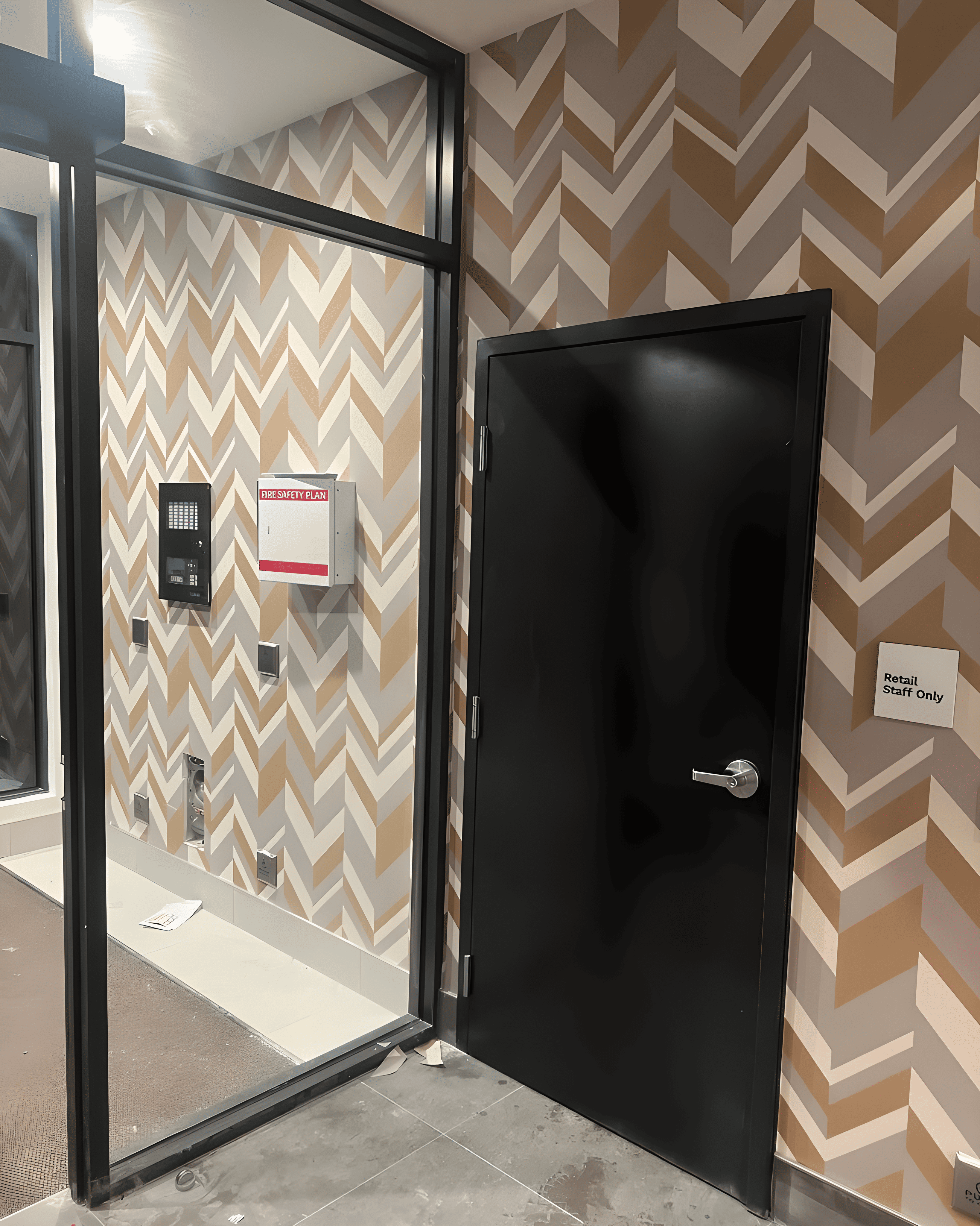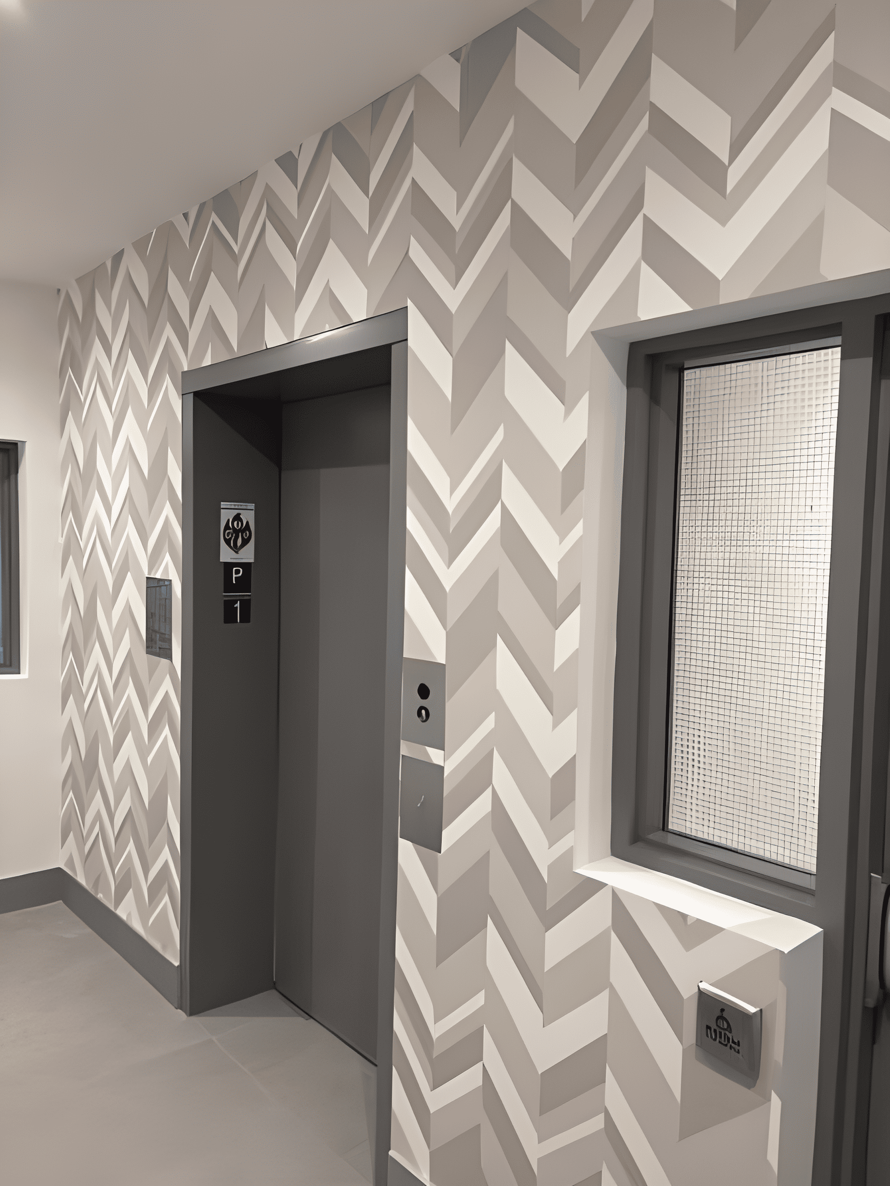 We installed wallcovering on the main lobby walls, parkade elevator lobby walls, and the amenity accent wall, completing all areas with Type II vinyl wallcovering.